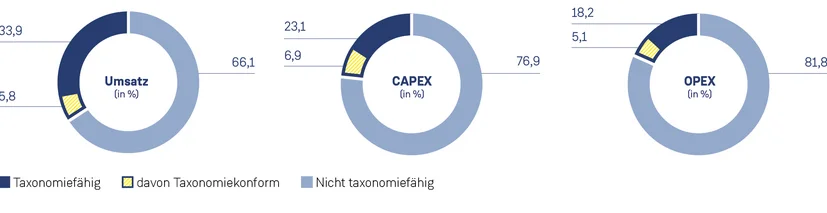 Dabei geht es nicht nur um Risikominimierung, sondern auch um Chancen: effizientere Prozesse, neue Geschäftsmodelle und eine stärkere Position im Markt. Wie gut das gelingt, zeigen die EU-Taxonomie-Kennzahlen. Sie machen transparent, in welchem Umfang Projekte und Investitionen zu den europäischen Klima- und Umweltzielen beitragen.