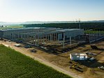 The logistics hall was constructed in a phased manner. While flat roof and façade work had already begun on one part of the building, the supporting structure was still being erected at the other end. These parallel and staggered work steps enabled an optimised construction process and a significantly shorter overall construction time.