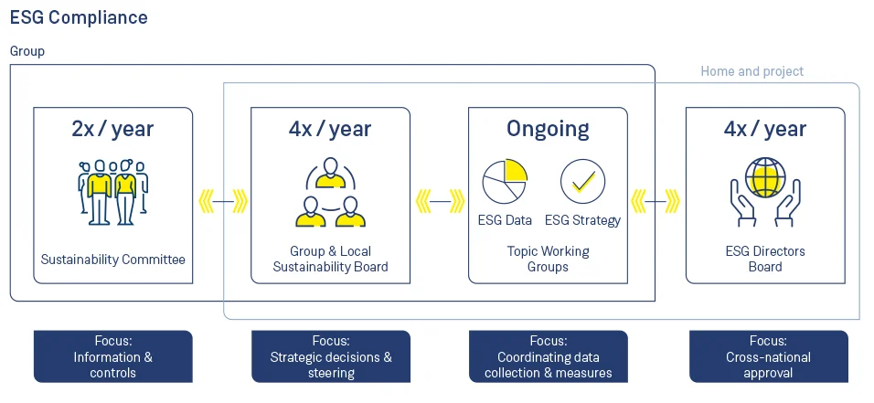 Our commitment to tax compliance is outlined in the PORR Tax Policy. The Group Tax department, in coordination with the CFO, is responsible for the group-wide Tax Policy and related tax directives, as well as their compliance. Furthermore, the data protection compliance management system ensures that risks of violations of data privacy regulations are effectively prevented or minimized.