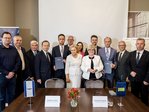 Unterzeichnung des Auftrags fĂŒr Linie 104 (v.li.): Mateusz Wanat â PKP PLK S.A., Jan Chmiel - PORR S.A.