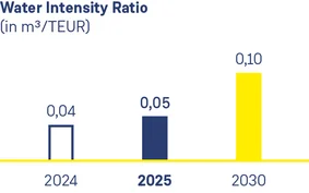 Im Jahr 2025 lag die WI-Ratio bei 0,05. Die Entwicklung zeigt, dass der Wasserbedarf durch neue Anforderungen zwar steigt, gleichzeitig aber gezielt gesteuert wird, um Ressourcen effizient einzusetzen und die Verfügbarkeit von Wasser langfristig zu sichern.