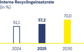 Im Jahr 2025 liegt die Rate bereits bei 57,2 %. Die Entwicklung macht deutlich: Recycling wird Schritt für Schritt in die Prozesse integriert und der Übergang zu einer zirkulären Bauweise konsequent vorangetrieben.